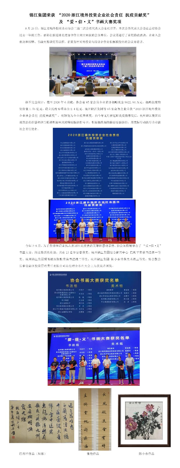 錦江集團(tuán)榮獲 “2020浙江境外投資企業(yè)社會(huì)責(zé)任 抗疫貢獻(xiàn)獎(jiǎng)” 及 “愛·信·義”書畫大賽獎(jiǎng)項(xiàng)