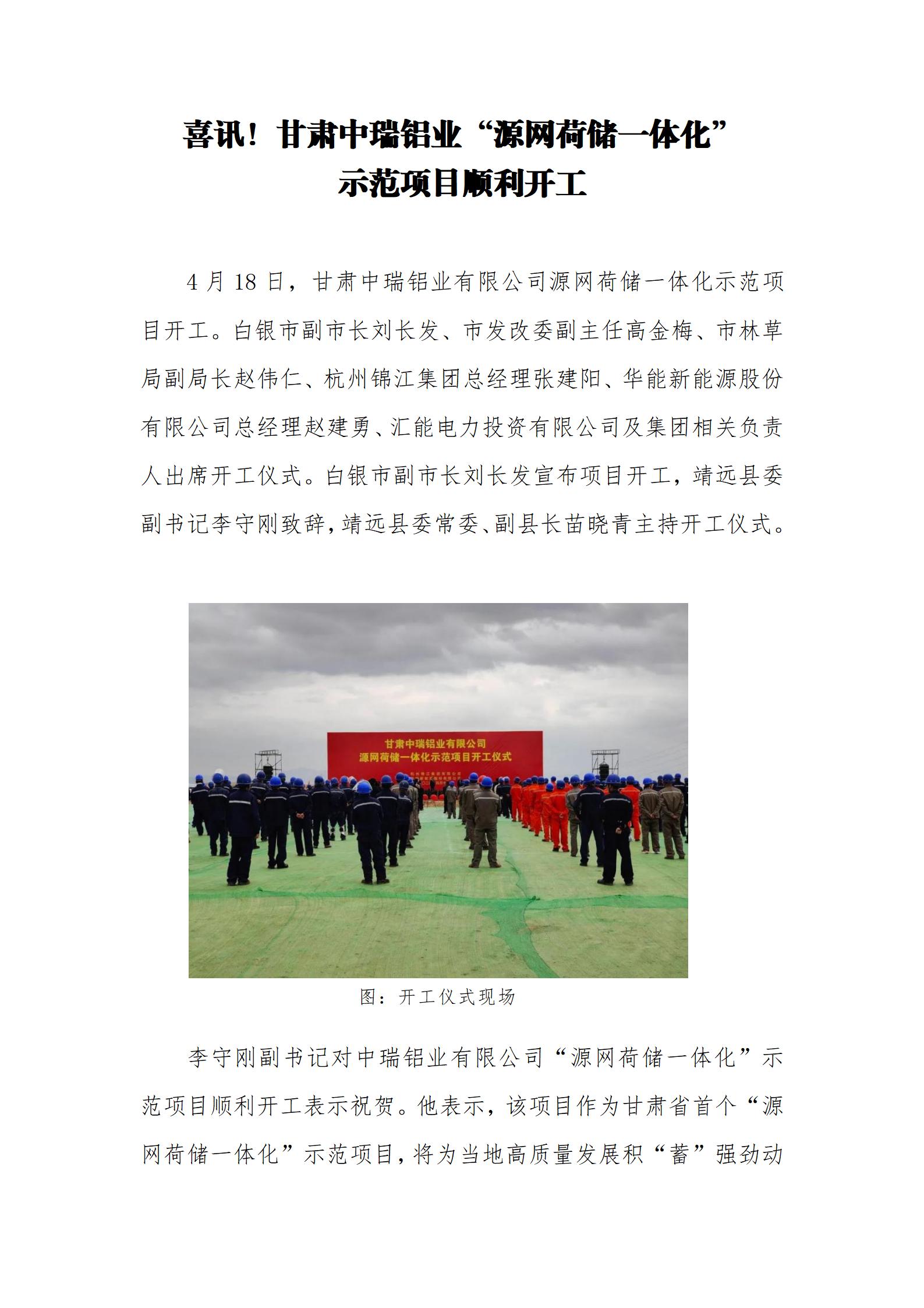 喜訊!甘肅中瑞鋁業“源網荷儲一體化” 示范項目順利開工
